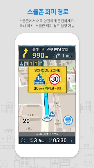 ▶ 답답한 스쿨존을 회피해서 안내하는 스쿨존 회피경로 서비스