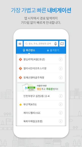 ▶ 앱 시작에서 경로탐색까지 가장 빠르고 가벼운 내비게이션
