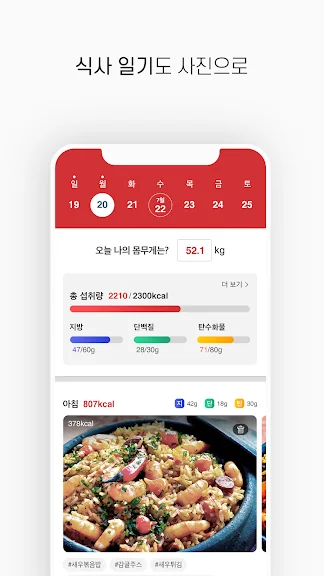 - 식단 사진과 식사 시간을 저장해 나만의 식단 일기를 완성해 보세요