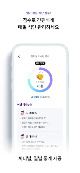- 다이어트 목표를 달성할 수 있도록 식단, 운동, 다이어트에 대한 실시간 피드백은 물론 매일 AI 코치가 분석한 다이어트 리포트를 확인할 수 있어요.