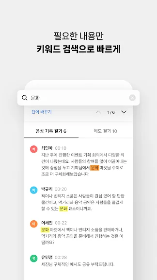 녹음 중 이전 기록에서 필요한 내용을 빠르게 검색해 참고하세요.