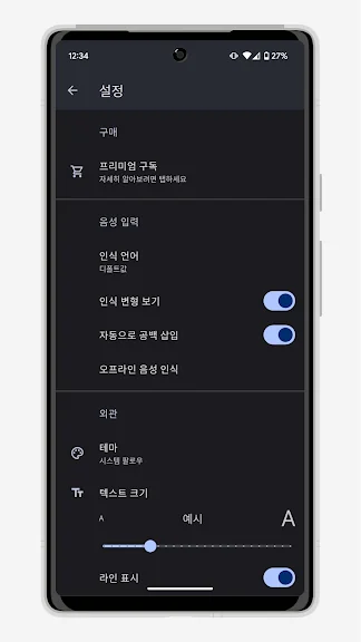 음성 인식에 사용될 언어를 선택할 수 있어요.