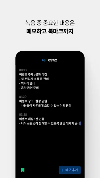 녹음 중 기억하고 싶은 내용이 있다면 바로 메모해 두세요.
