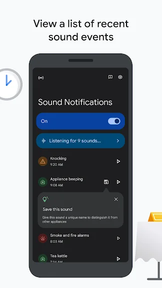 • 집에 있는 가전제품에서 소리가 날 때 알림을 받을 수 있도록 맞춤 알림음을 추가합니다.• 휴대기기 또는 웨어러블 기기의 플래시나 진동을 통해 알림을 받습니다.