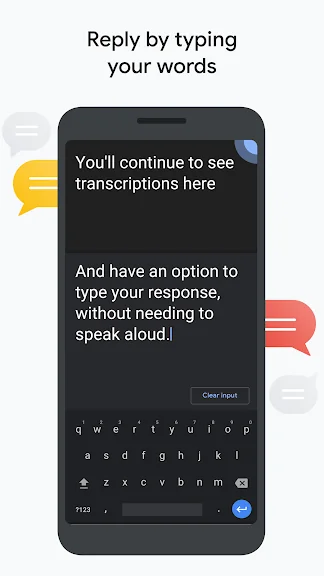 • 대화 중에 대답할 내용을 텍스트로 입력합니다. 기기 키보드를 표시해 할 말을 입력하면서 대화를 이어갈 수 있습니다. 입력 중에도 스크립트가 계속 표시됩니다.