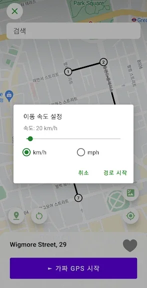 - GPS 위치를 선택한 위치로 변경