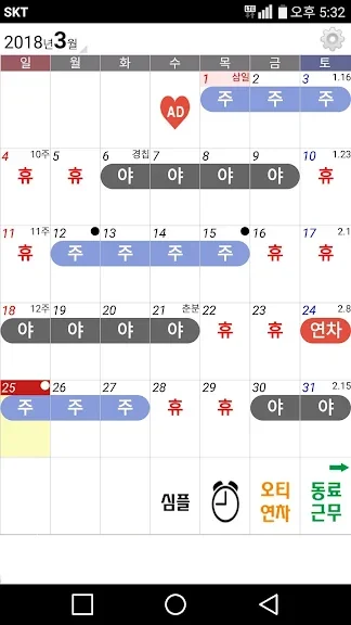 아래는 교대달력(시프트캘린더) 어플에 대한 스크린샷 정보입니다.