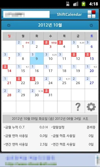 교대달력 어플에 대한 스크린샷 정보가 필요하시다면 아래 이미지를 참고하시기 바랍니다.