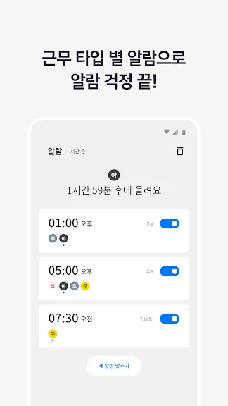 오늘의 교대근무에 맞는 알람으로 지각 걱정 끝!