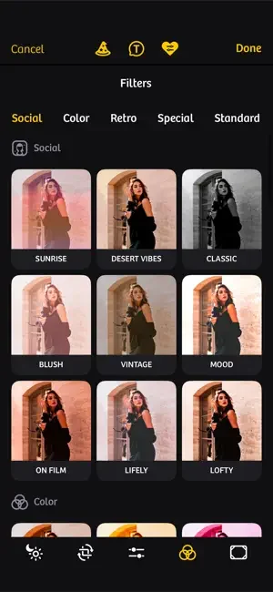 Each of our photo filters can be customized to fit your unique vision with pro editing tools:
