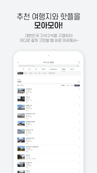 아래는 대한민국 구석구석 어플에 대한 스크린샷 정보입니다.