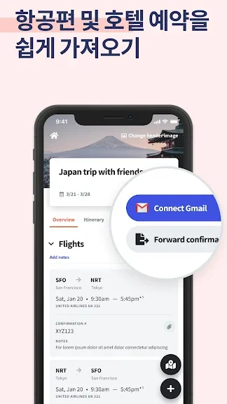 - ✈️🛏️ 해외 항공권, 숙박 시설, 관광지를 한 곳에서 확인 (TripIt 및 Tripcase와 유사)