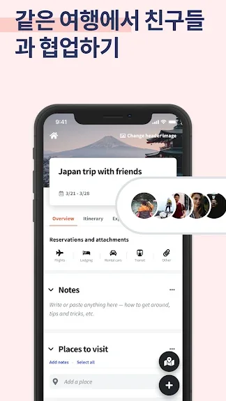 - 🧑🏽🤝🧑🏽가족 여행 계획 시 친구 초대 및 실시간 협업 (Google 문서와 유사)