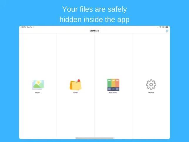 The app doesn’t send your files anywhere and all files are stored only on the device. You can store private photos, videos and documents.