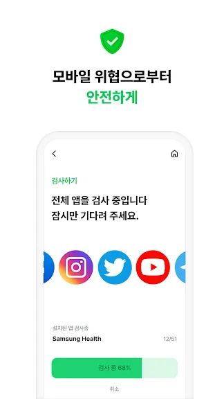 스마트폰에 있는 모든 파일과 설치된 앱을 검사하여 바이러스를 탐지합니다.