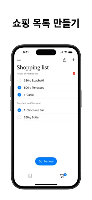 - 쇼핑 목록에 재료 추가