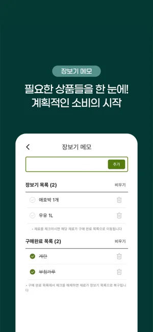 장보기 전에 필요한 재료를 미리 적어 효율적으로 쇼핑할 수 있어요.