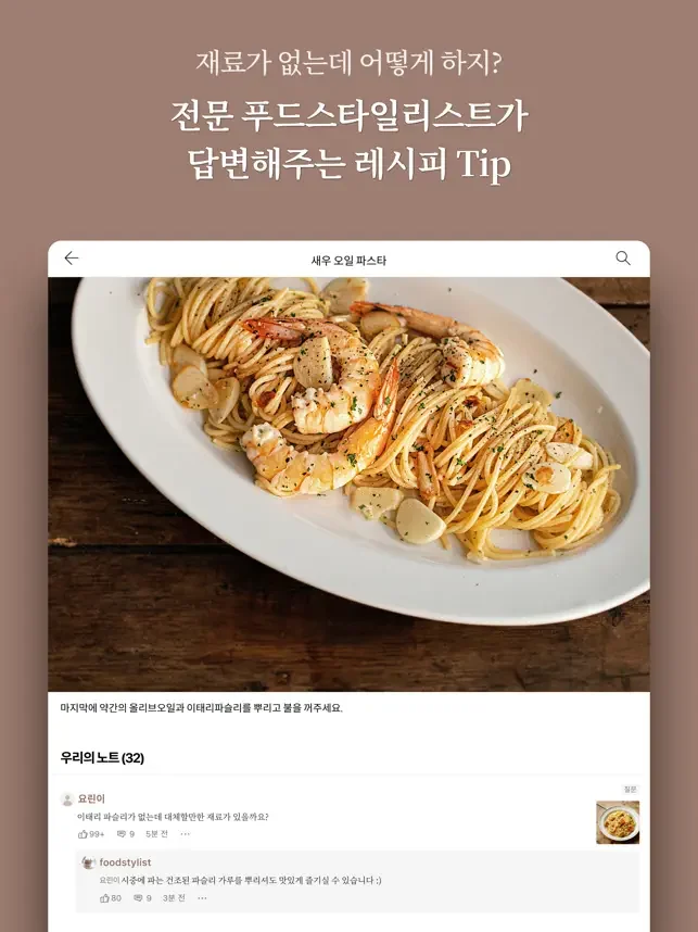 레시피노트에서 유저들의 꿀팁까지 확인할 수 있어요.