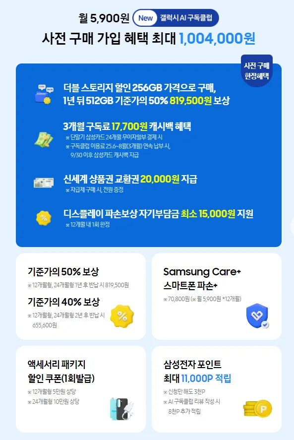 | 중고보상 | 기존 갤럭시S 시리즈 최대 40만원 보상 |
