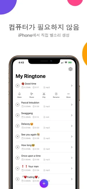 쉽게 빠르게 정확하게 벨소리를 만들고 관리할 수 있습니다.