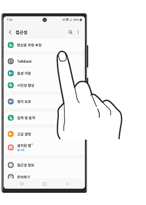 토크백(TalkBack) 또는 음성 지원(Voice Assistant) 사용 시에는, 터치 인식 방법이 달라집니다.