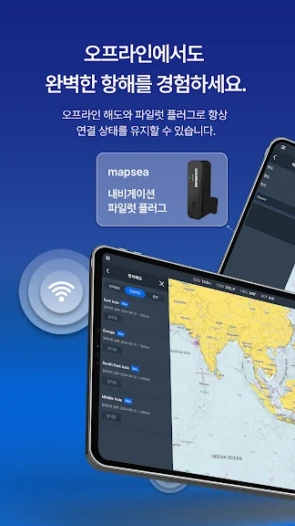 - 오프라인 전자해도, Pilot Plug, GPS 데이터로 안전한 원거리 항해까지 가능합니다.