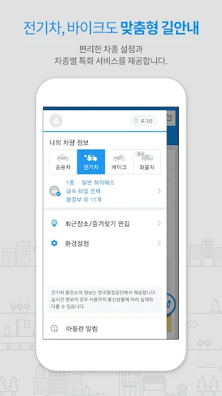 사용자의 위치 주변 다양한 시설들을 안내하며, 전기차 사용자를 위한 충전소 안내가 새로 적용됩니다.