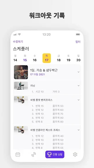 아래는 헬스장 루틴 - 운동일지 & 헬스 기록 어플에 대한 스크린샷 정보입니다.