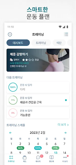 전문가들이 여러분의 30일 플랜을 확인하고 본인의 검토를 거쳐 즉시 수정됩니다. 9개 유형의 플랜을 통해 칼로리 소모, 면역 계통 개선 등의 효과를 보실 수 있습니다. 휴식일과 다양한 운동 등을 통해 신체를 고루 단련하면서 더욱 합리적인 피트니스 여정을 즐기세요.
