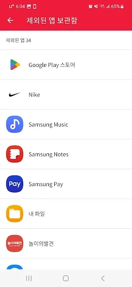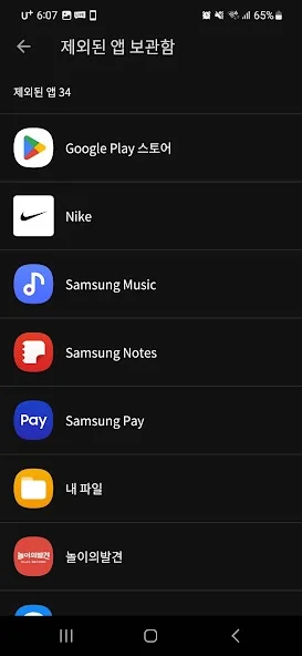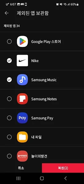 - 확인 불필요한 앱 제외 및 복원