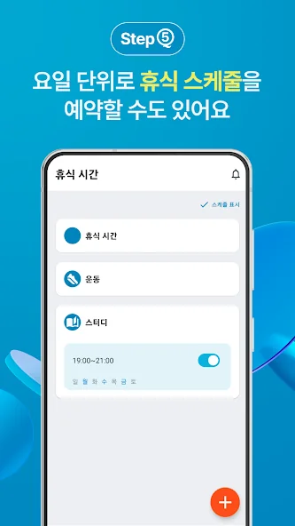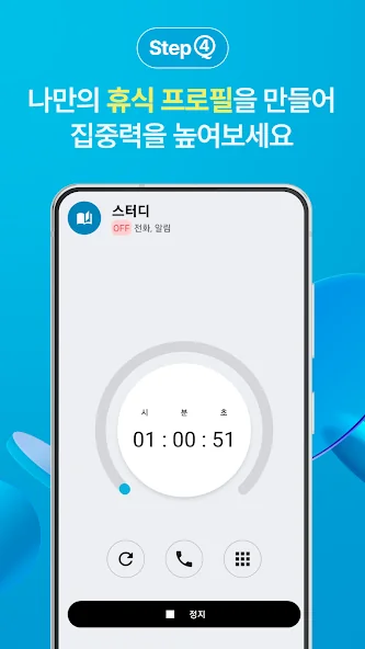 - 공부 시간, 명상 등 프로필을 설정하여 휴식 시간을 편리하게 관리할 수 있어요.