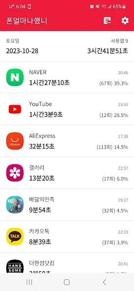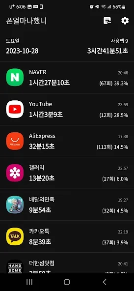 아래는 스마트폰 사용시간 - 폰얼마나했니 어플에 대한 스크린샷 정보입니다.