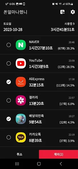 2) 스마트폰 사용시간 - 폰얼마나했니 어플 스크린샷