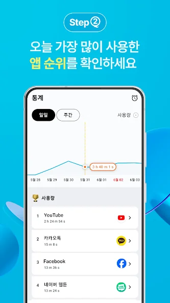 ★ 앱 사용량 내역: 사용 내역을 그래프 및 통계로 확인합니다.