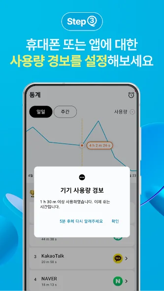 스마트폰 사용 시간을 확인하기 위해 필요한 기능들을 사용해 보세요.