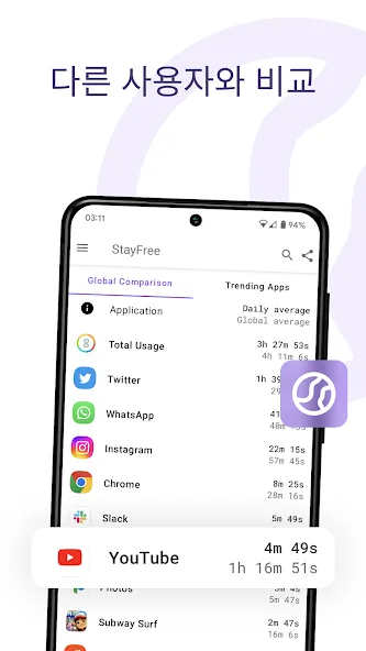 아래는 핸드폰 사용시간 - 스테이프리 (StayFree) 어플에 대한 스크린샷 정보입니다.
