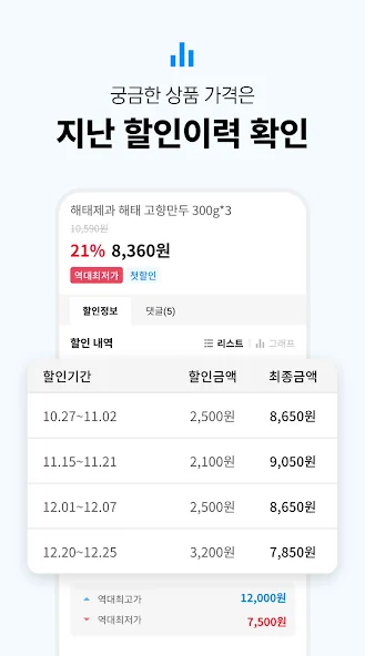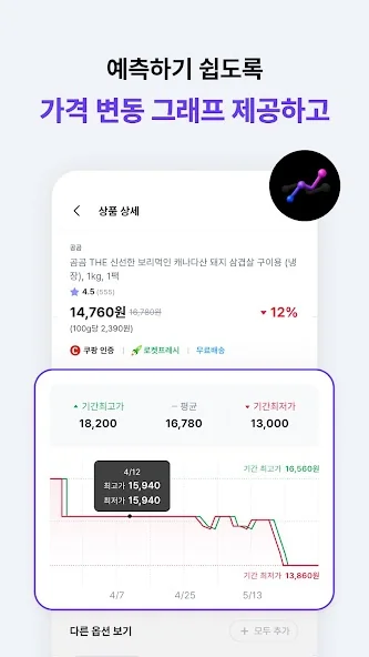 상품 가격의 변동 추이를 그래프로 제공해드려요.