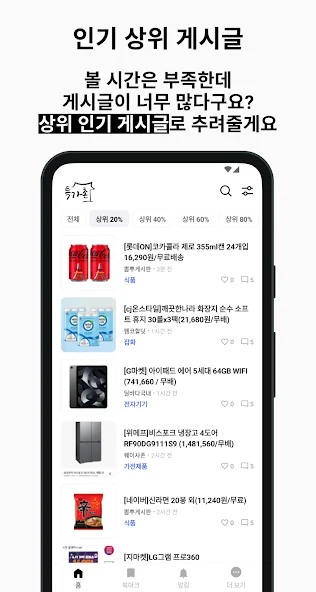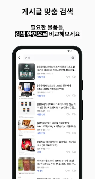 # 원하는 게시글을 검색하고 핫딜 게시글을 북마크 목록으로 관리하세요.