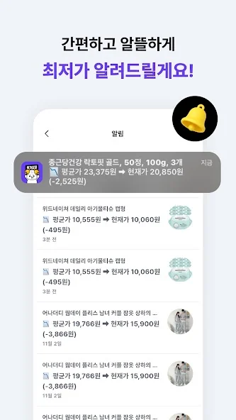최저가 타이밍에 빠르게 알림을 보내드려요.