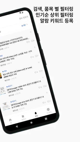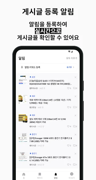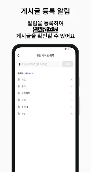 # 알림 키워드를 추가하여 실시간으로 등록되는 새 할인 게시글을 알람으로 받아보세요.