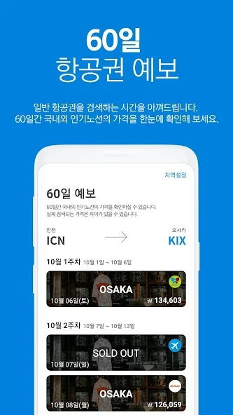 60일간의 국내외 인기노선 항공권 최저가를 한눈에 확인해보세요