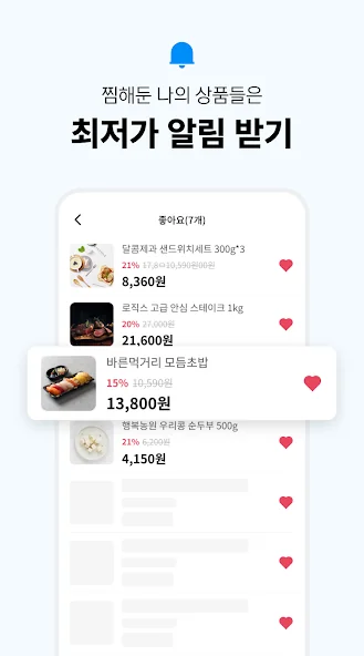 내가 찜한 상품이 최저가로 내려가면 푸시로 알림을 보내드립니다!💌