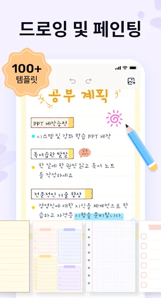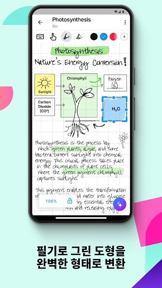 특히 직관적인 펜 제스처 덕분에 필기 경험이 훨씬 자연스럽고 부드러워요. 그림이나 도형을 그리면서 바로 텍스트로 바꾸거나, 반대로 텍스트를 그림으로 바꾸는 것도 간단해서, 아이디어를 빠르게 정리하는 데 안성맞춤이에요.