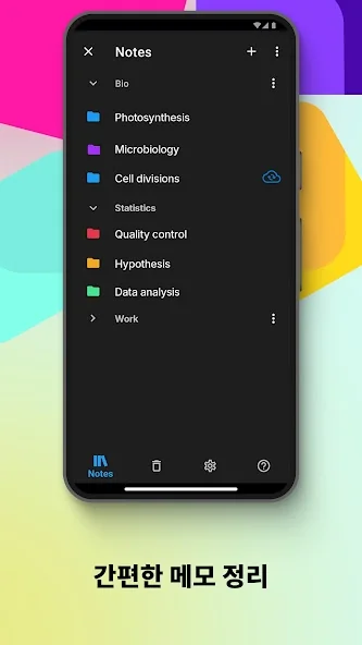 이 앱은 컬러 분류 기능이 있어서, 노트를 색깔별로 구분해두면 찾기도 쉽고 정리하기 편해요. 바탕화면 위젯으로 포스트잇처럼 메모를 붙여두면, 새로고침 없이 바로 볼 수 있어 편리하답니다.