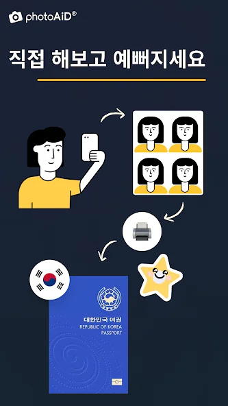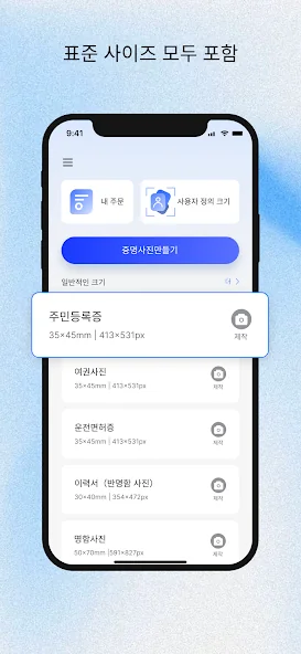 여권사진, 증명사진 제작 어플에 대한 스크린샷 정보가 필요하시다면 아래 이미지를 참고하시기 바랍니다.