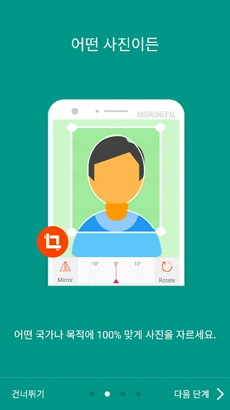 아래는 여권/신분증 사이즈 사진 편집기 어플에 대한 스크린샷 정보입니다.