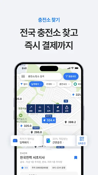전기차 충전소 상세위치, 주차장 높이제한, 주차요금, 전기차 충전 요금, 최근 충전기 사용이력 등 전기차 충전에 필요한 모든 정보를 한 눈에 확인하세요.