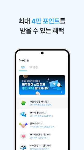 충전기/지역마다 사업자가 달라서 매번 카드를 발급해왔다면, 모두의충전이 개발한 NFC 기반 원클릭 통합 결제 솔루션 ‘모두페이’ 하나로 충전할 때마다 무제한 10% 적립 혜택받으세요.